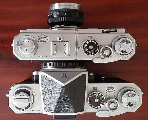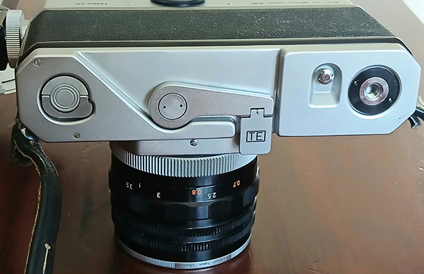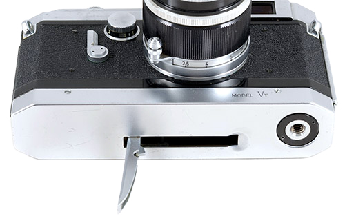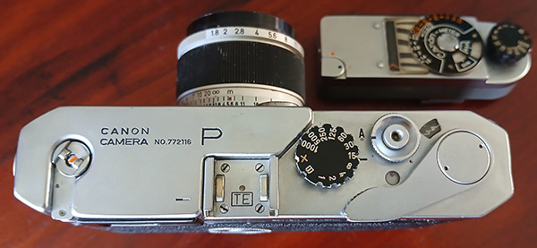 The superstructure was new, incorporating the new viewfinder, its illumination window and the selenium cell exposure meter, essentially the Canon-Meter 2 built in. The “T” setting made a return to the shutter dial and the film rewind crank changed from the unique Canon recessed design to the more common crank on a disc type. The camera's footprint remained the same but its height increased to be basically the same as the trigger operated models. However, the superstructure is thicker than earlier models with the selenium cell adding a some millimetres at the front and the rangefinder/viewfinder housing bulging out at the rear.