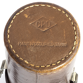 There were only minor changes until production ended in 1957. Initially only engraved with the Kogaku Seiki eagle logo, from 1947 it was named “X-Ray Canon 35” and from 1951 or 1952, “X-Ray Canon CX-35”. Early 35 mm type with Seiki eagle, missing both front leatherette and chain usually attached to the film winding knob which enables winding on remotely: