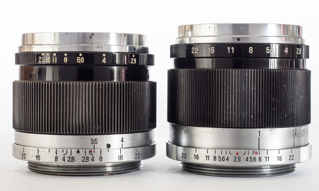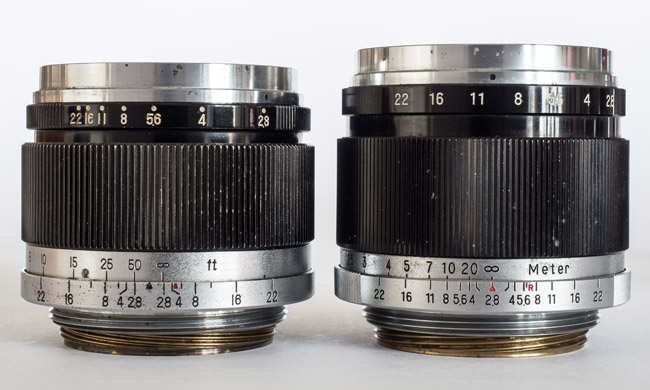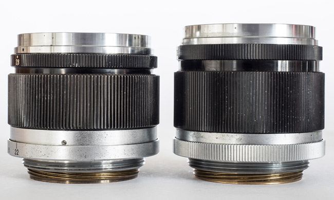 As noted in Viewfinder/Rangefinder, with the exception of the Komura f/4.5 200 mm lens, there are no direct mount lenses longer than 135 mm because of rangefinder accuracy. Longer Leitz lenses and Leica macro work used SLR-like reflex housings, the pre-War screw mount version referred to by Leitz as “Mirror Reflex Housing”, code name “PLOOT”, the later ones called “Visoflex” (I, II and III but only I and II were available in screw mount versions and according to the applicable brochure, the rare version of the screw mount II was for the body side only, the lenses remained M mount). Versions were also made by accessories companies such as Novoflex in Germany and Accura and Miranda in Japan, mainly with the Leica in mind, but how any might work with Leica copies, especially the bigger bodies like the YF, is unknown to me (body clearance etc.). Whilst a number of lenses are suitable for use with the reflex housings for macro purposes as is, to enable infinity focusing for general photography, lenses must obviously be designed for the longer flange to film distance, i.e. they must have shorter barrels.