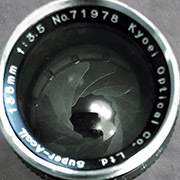 As a result of extensive searches, since confirmed by Mikio Awano's earlier article, I can confidently say that it is an almost exact match for the same spec “Super-Acall” lens made by Kyoei Optical Co., Ltd. This features 4 elements in 3 groups which seems like a rather basic construction, however, it was a common configuration used for f/3.5 135 mm LTM lenses by makers, including both Nikon and Canon. Versions of the Canon were made from 1952 through to 1975 and it is quite well regarded.