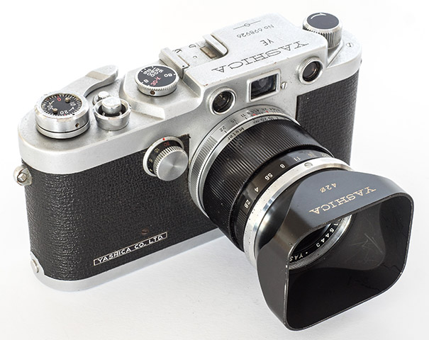 Both Yashica and Canon were leaders in mass production techniques. The Canon P rangefinder was a more refined version of a similar concept to the YF. In comparison, the Canon P price in April 1959 was ¥39,500 with f/2.8 50 mm lens and ¥49,500 with f/1.8 lens.